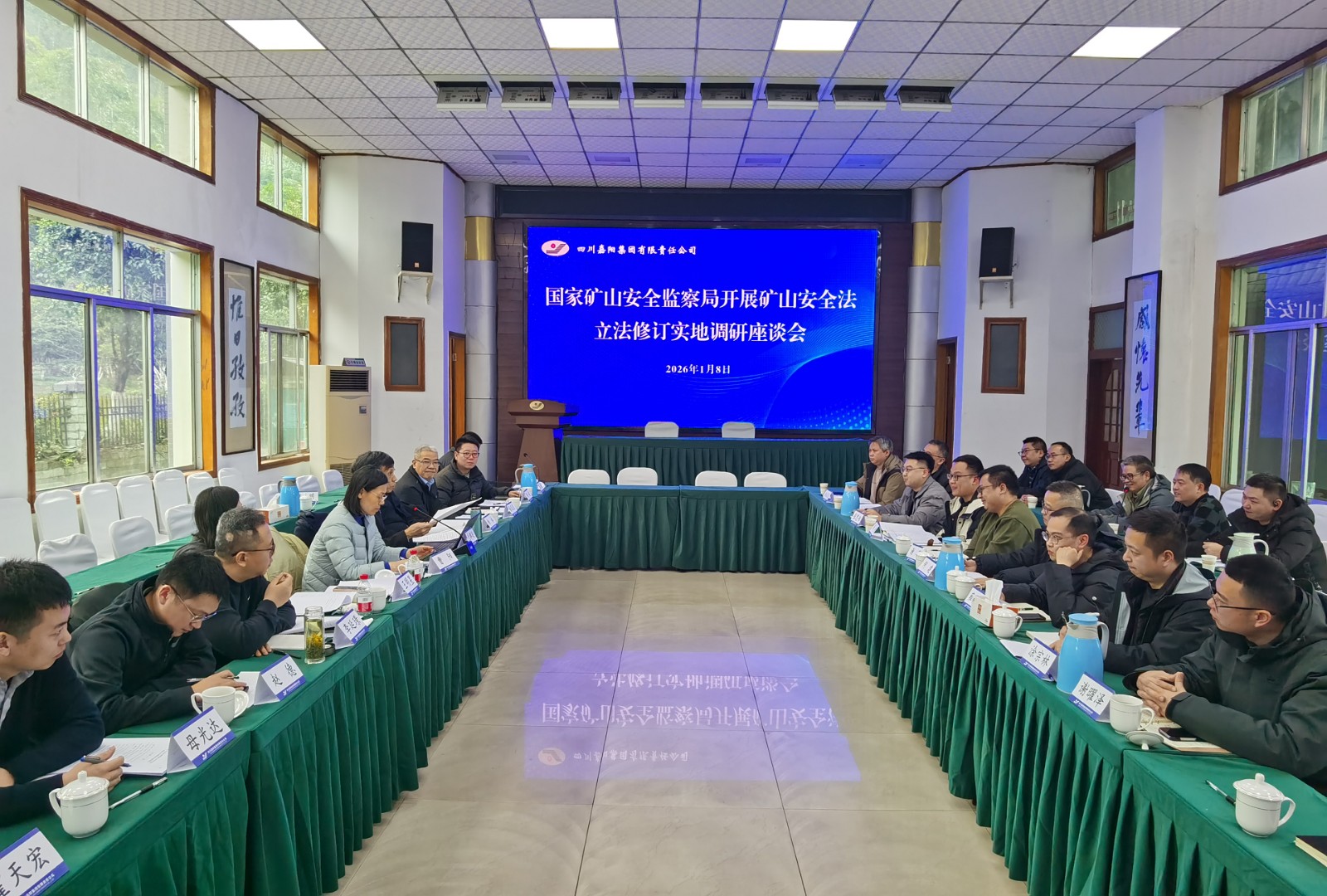 1月8日,国家矿山安全监察局安全监察专员(副司局级)兰群足一行到公司开展矿山安全法修订调研,全国人大常委会法工委社会法室处长曹阳,省矿山安全监察局副局长商宜,乐山市委常委、常务副市长黄秀航等省、市相关领导陪同调研。